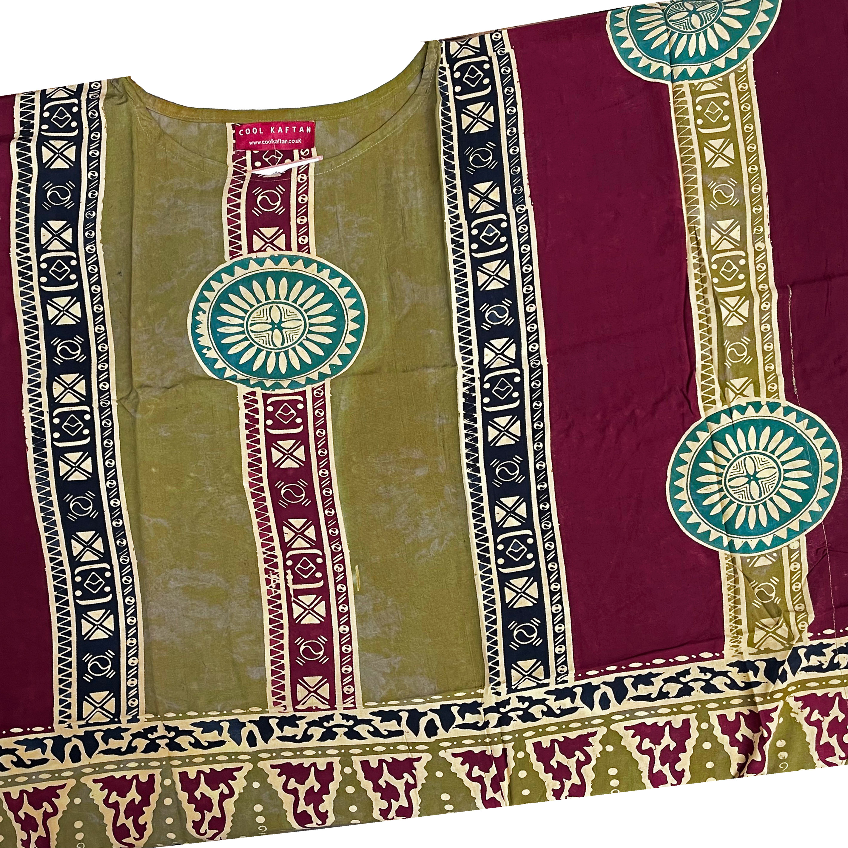 This is made from lovely soft-feeling fabric and is very comfortable to wear. The colours are vibrant and will stand up to as many washes as you can put it through without running or fading. Also priced very reasonably. I would recommend any of CoolKaftan's products; they have never disappointed me.