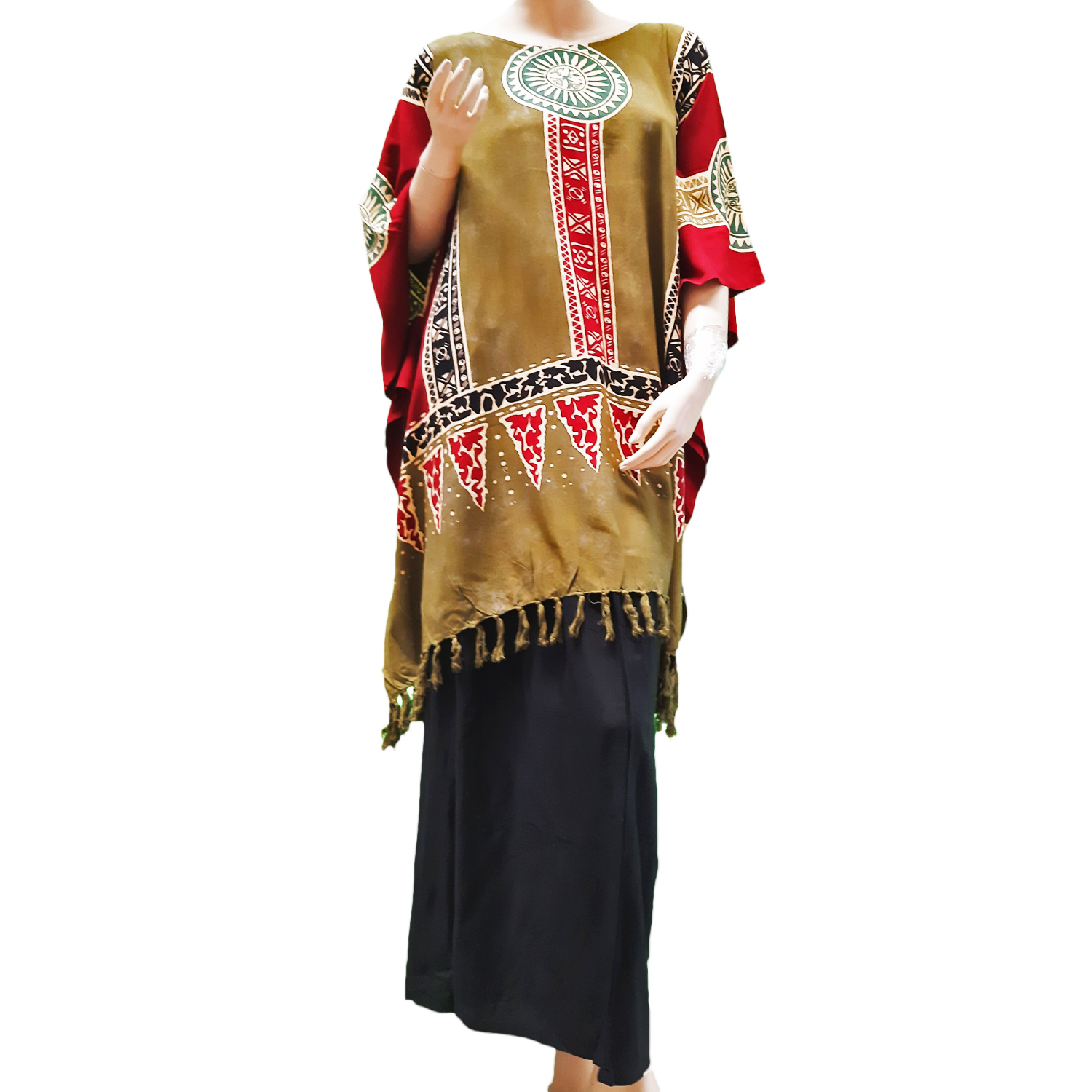 This buttersoft kaftan top is stunning you cannot believe your eyes. Its loose design is suitable for many occasions and its fabulous print will cheer up your day. The unique motives are at the back as well as the front of the poncho. The nature of this top complements wide range of body shapes and it drapes beautifully. Wear it over a pair of jeans or trousers. Perfect for lounging and holidays.